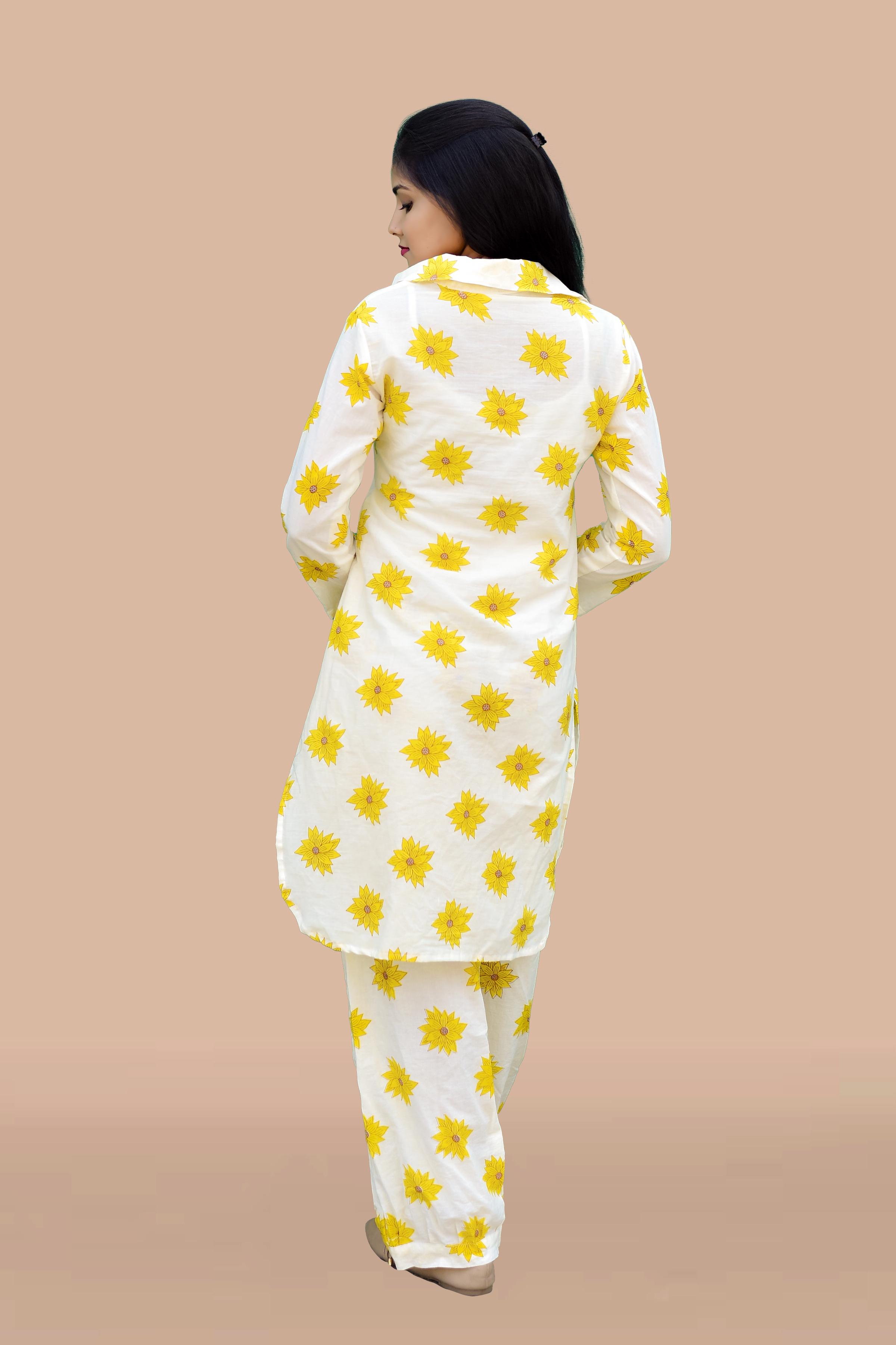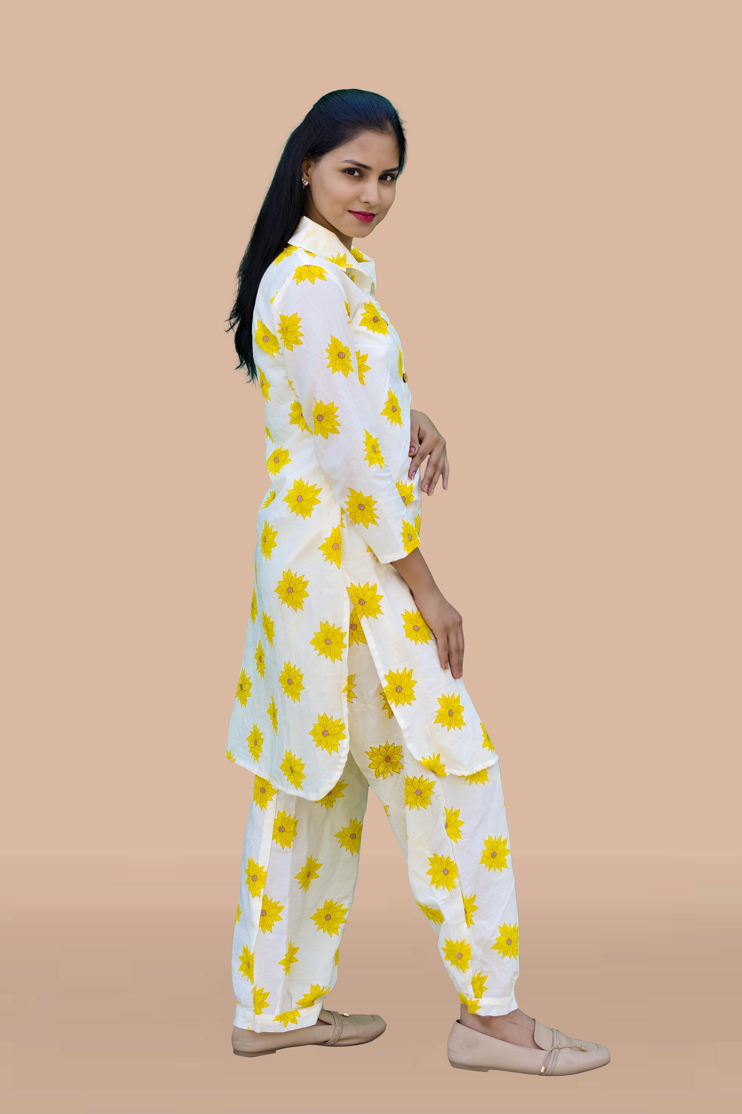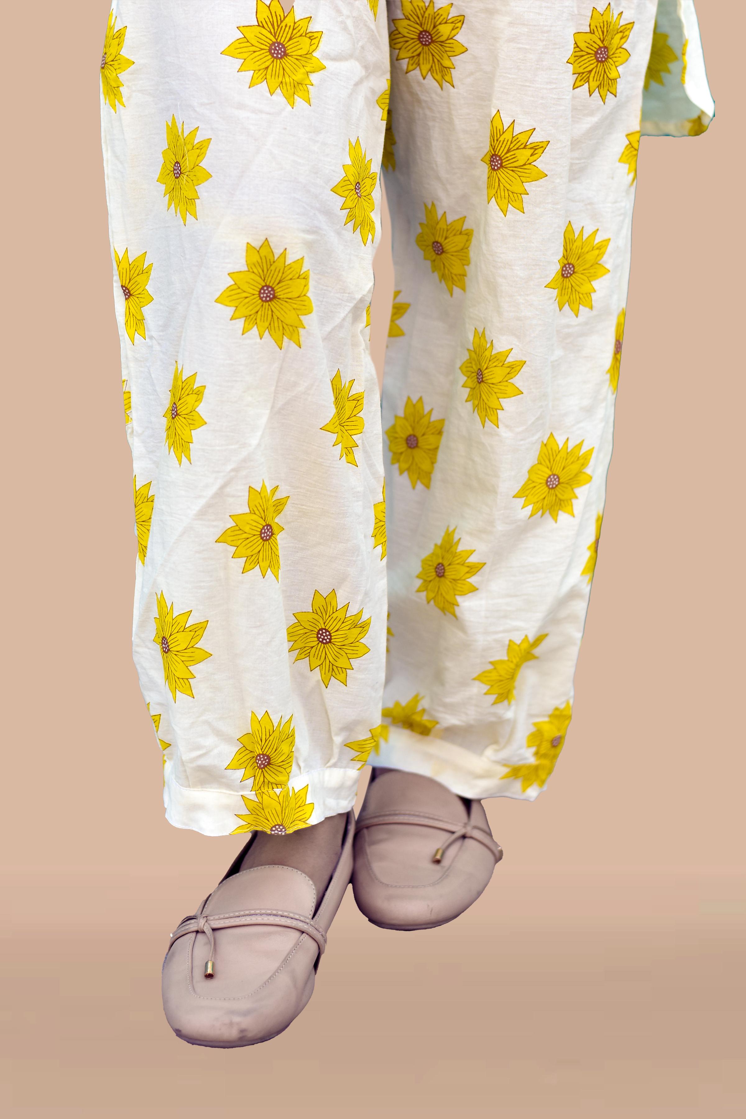 •Print: The kurta features a charming sunflower print, adding a touch of nature-inspired beauty to the outfit.