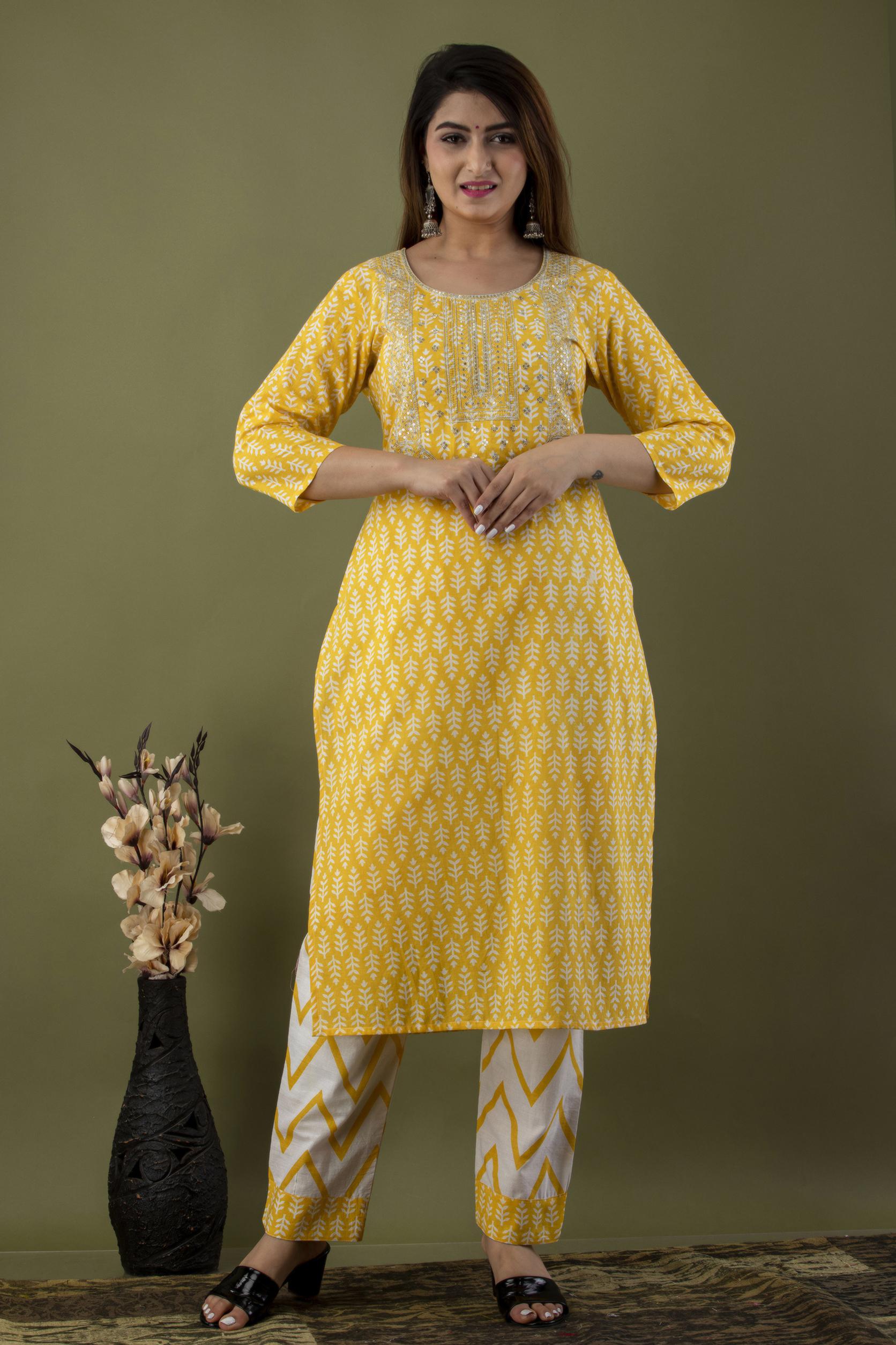 Fabric: Cotton Sleeve Length: Three-Quarter Sleeves Pattern: Printed Combo of: Single Sizes: XL, L, M, XXL "Elevate your style with our exquisite Printed Sequence Kurta Set in a delightful yellow hue. This ensemble is more than just clothing; it's an expression of elegance and comfort. Crafted from pure cotton, this suit embodies the perfect blend of breathable material and a rich aesthetic. The enchanting sequence print adds a touch of glamour, making it ideal for a variety of occasions. Whether you're attending a festive celebration or a casual gathering, this kurta set is a versatile addition to your wardrobe. Available in a range of sizes, including M (38), L (40), XL (42), and XXL (44), our Printed Sequence Kurta Set ensures a perfect fit for every body type. We believe that fashion should be inclusive, and our commitment to offering good sizes reflects that belief. Experience the luxury of comfort as you step into the pure cotton fabric that feels gentle against your skin. The breathable material allows you to move with ease while exuding a rich and sophisticated look. Adorn yourself in the epitome of style with our Printed Sequence Kurta Set. Whether you're looking for a fashion statement or a timeless classic, this ensemble delivers on both fronts. Embrace the allure of yellow and make a lasting impression wherever you go. Invest in a wardrobe staple that combines fashion and comfort effortlessly. Choose the Printed Sequence Kurta Set for a refined look in sizes tha Country of Origin: India