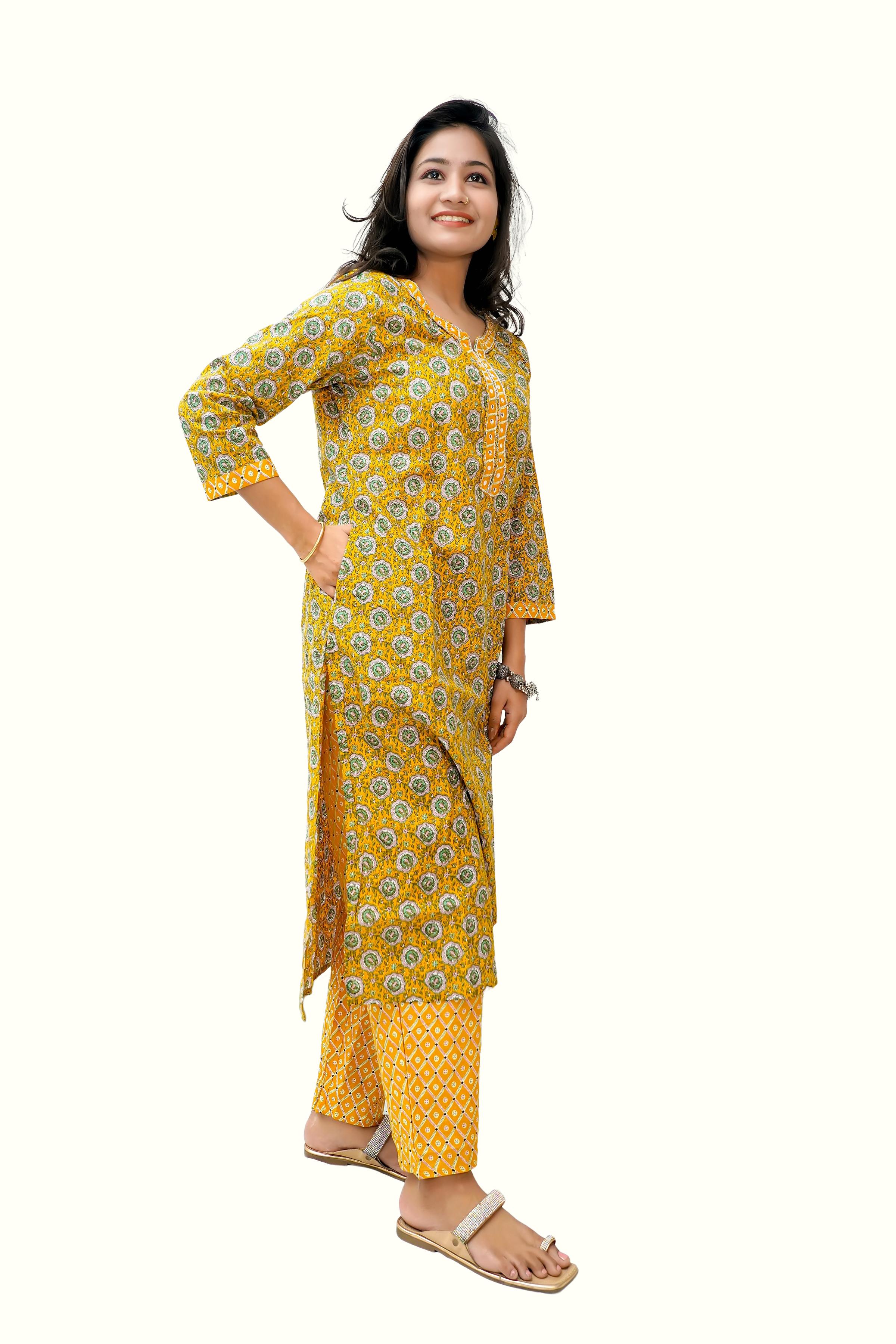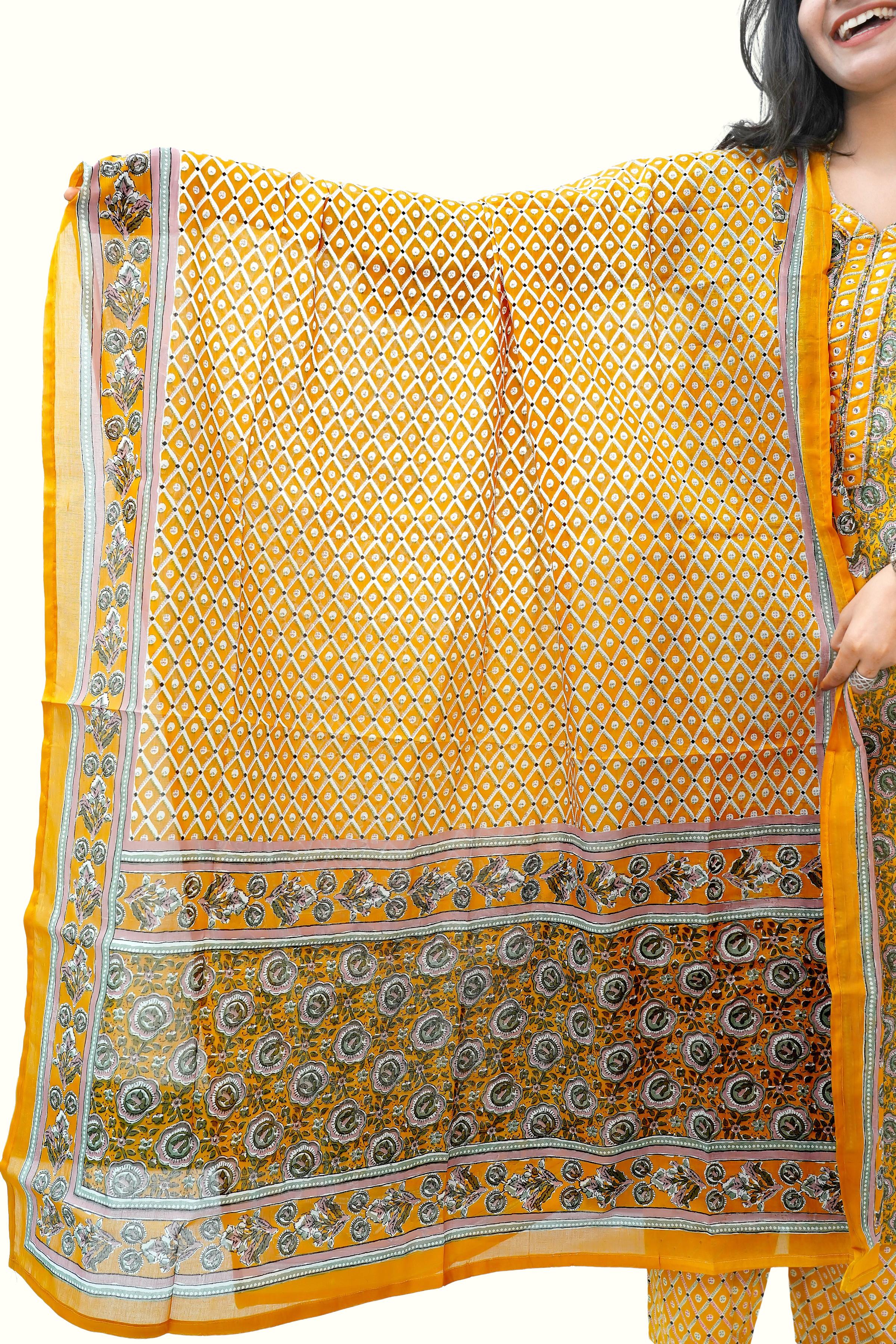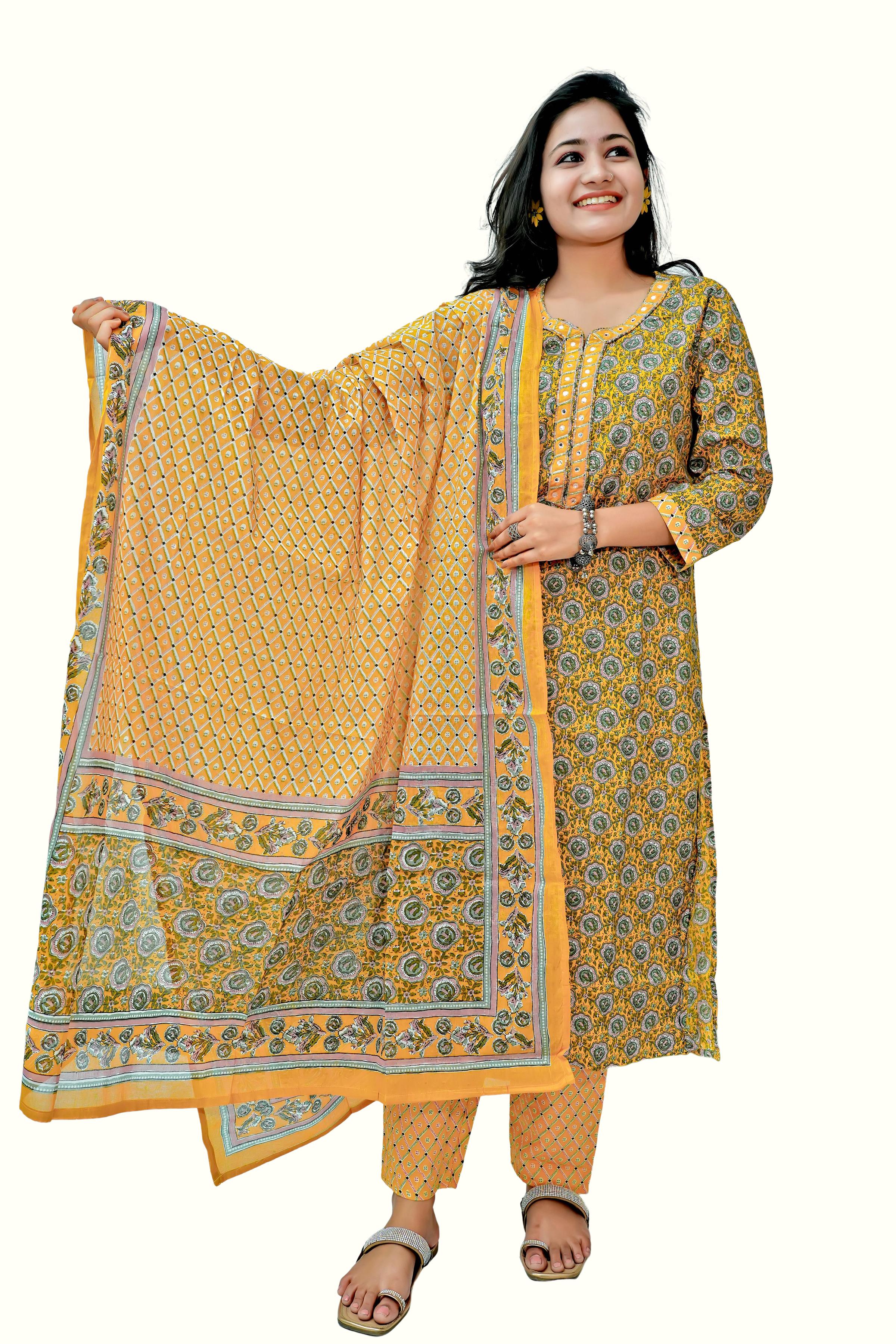 Cotton Sleeve Length: Three-Quarter Sleeves Pattern: Printed Combo of: Single Sizes: XL, L, M, XXXL, XXL "Introducing our exclusive Mustard Cotton Kurta Set with Dupatta –