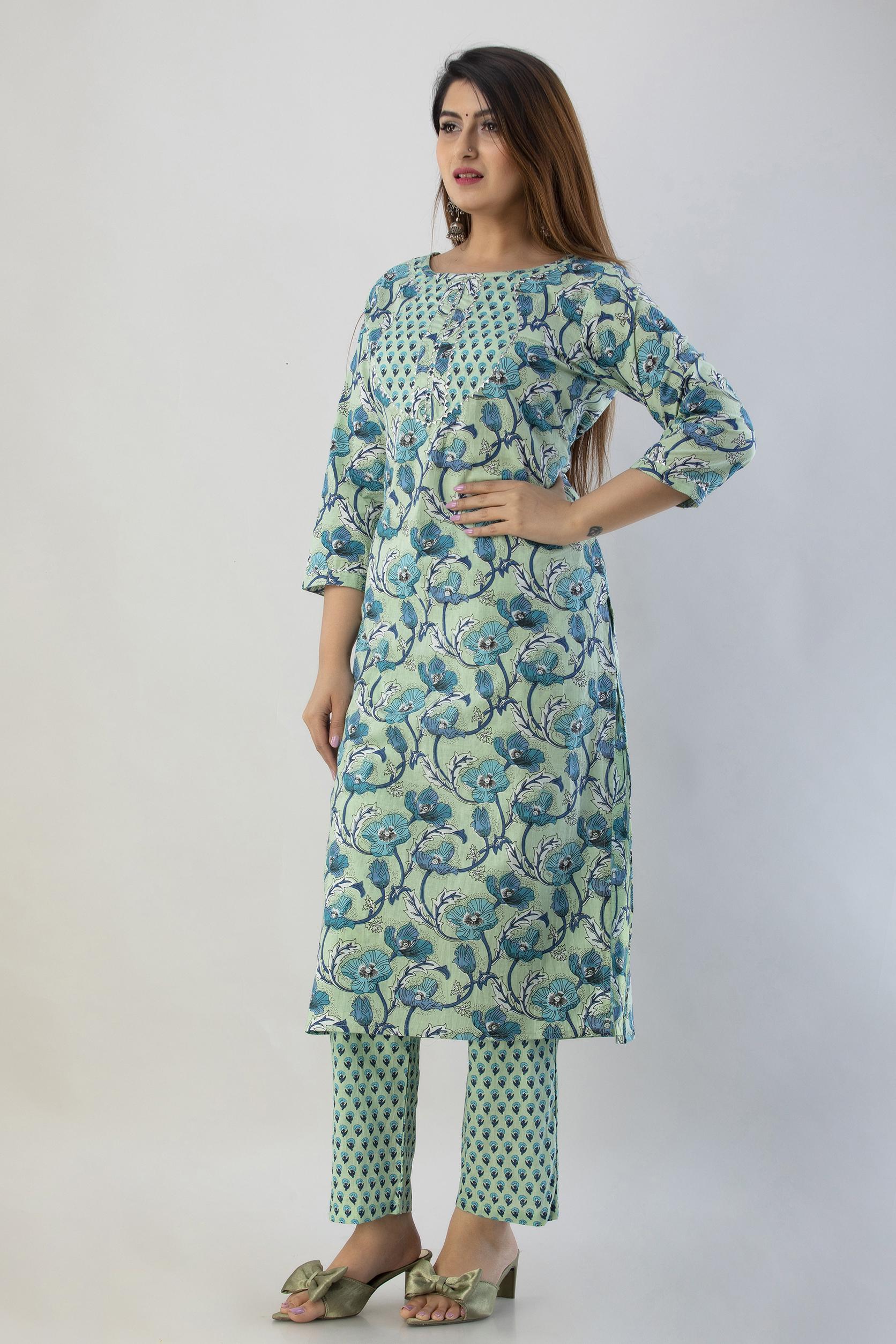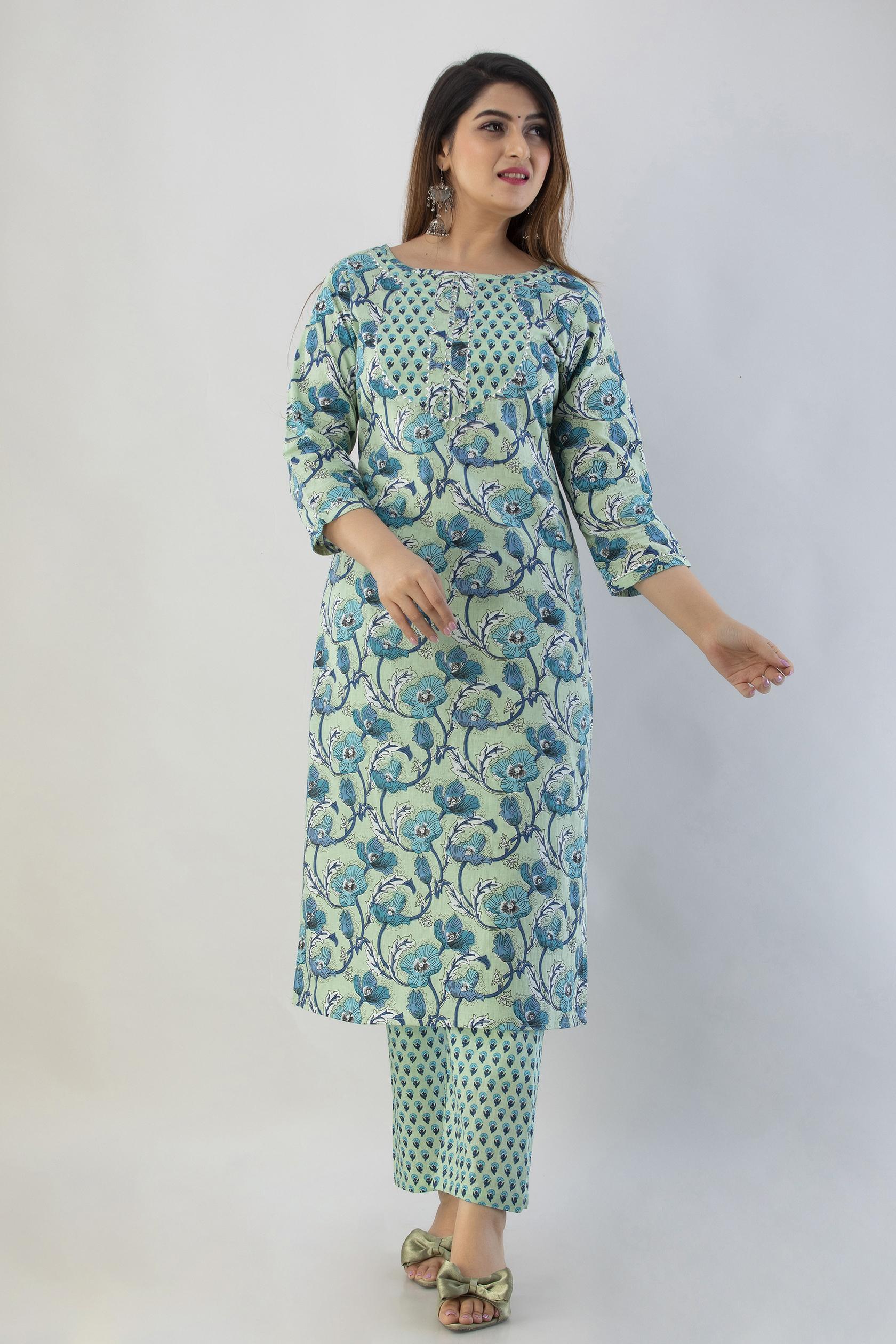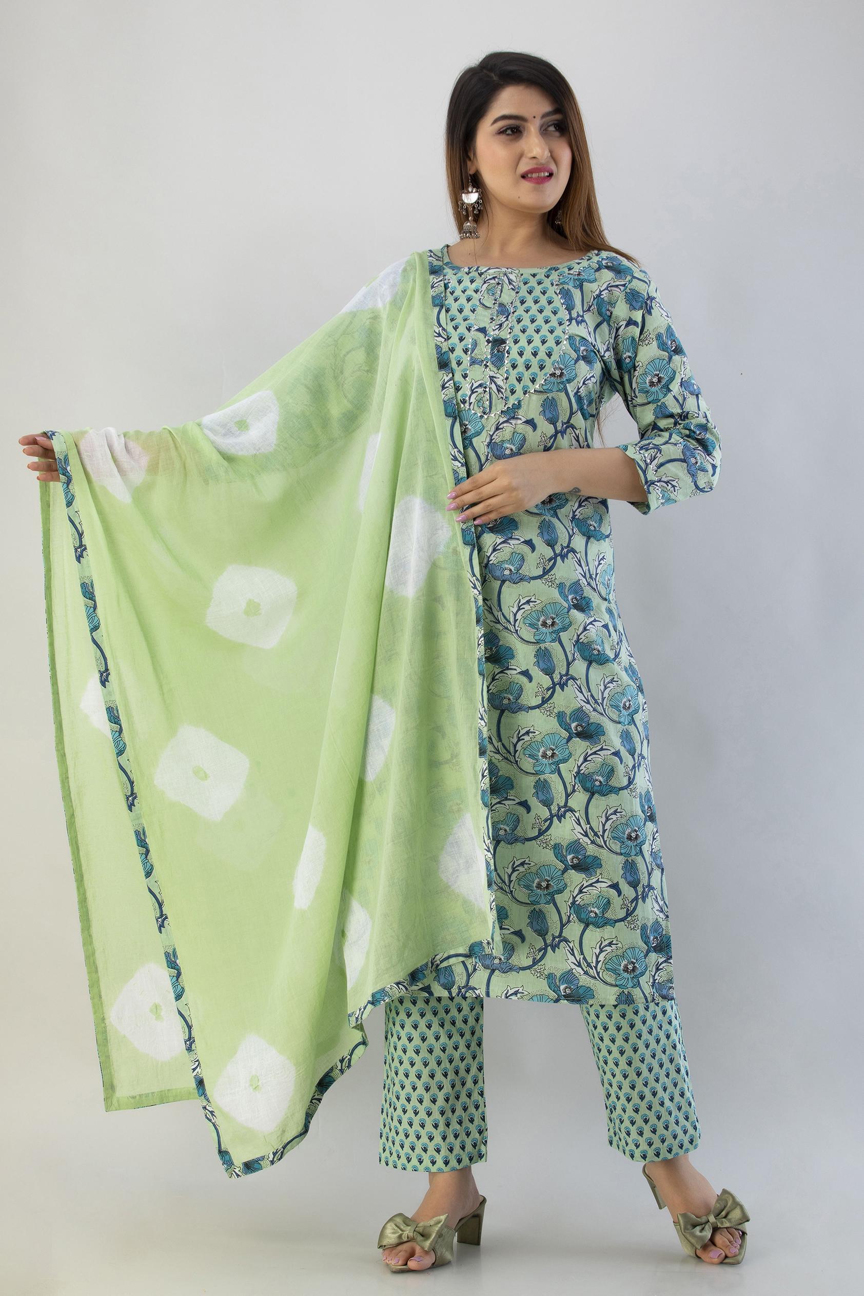 Cotton Sleeve Length: Three-Quarter Sleeves Pattern: Printed Combo of: Single Sizes: XL, L, M, XXL "Introducing our exquisite Printed Cotton Kurta Set with Chiffon Dupatta in a refreshing Green hue – a celebration of comfort and style. Immerse yourself in the allure of pure cotton as you embrace the richness of this ensemble. The intricately designed print adds a touch of sophistication to the kurta set, making it a versatile choice for various occasions. Whether you're attending a special event or a casual gathering, this ensemble effortlessly blends fashion and comfort. Available in a range of sizes, including M (38), L (40), XL (42), and XXL (44), our Printed Cotton Kurta Set ensures a tailored fit for every body shape. We believe that fashion should be inclusive, and our commitment to offering good sizes reflects our dedication to your individuality. Step into the breathable embrace of pure cotton, allowing you to move with ease while exuding an air of grace. The set is complemented by a Chiffon Dupatta, adding an extra layer of elegance to your overall look. Make a statement with the rich Green hue that not only showcases your style but also your vibrant personality. The Printed Cotton Kurta Set is more than just an outfit; it's a reflection of your unique fashion sensibilities. Invest in the perfect blend of comfort and style. Choose the Printed Cotton Kurta Set with Chiffon Dupatta for an ensemble that not only looks good but feels even better, in sizes that cate Country of Origin: India
