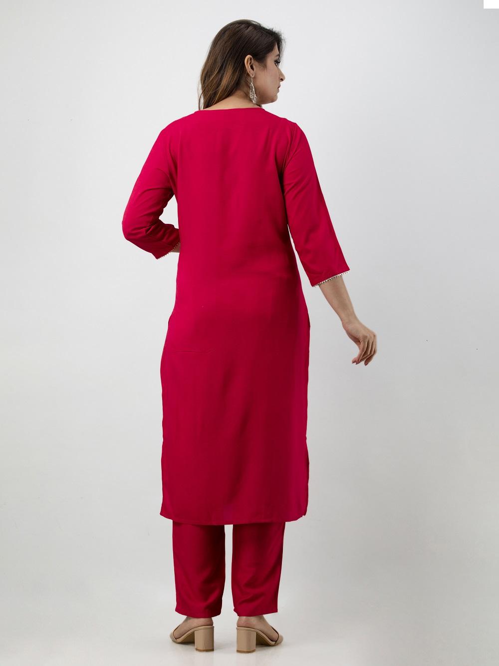 Fabric: Cotton Sleeve Length: Three-Quarter Sleeves Pattern: Dyed/ Washed Combo of: Single Sizes: XL, L, M, XXL "Indulge in the allure of our Sequin Cotton Kurta Set in the enchanting shade of Dark Pink –