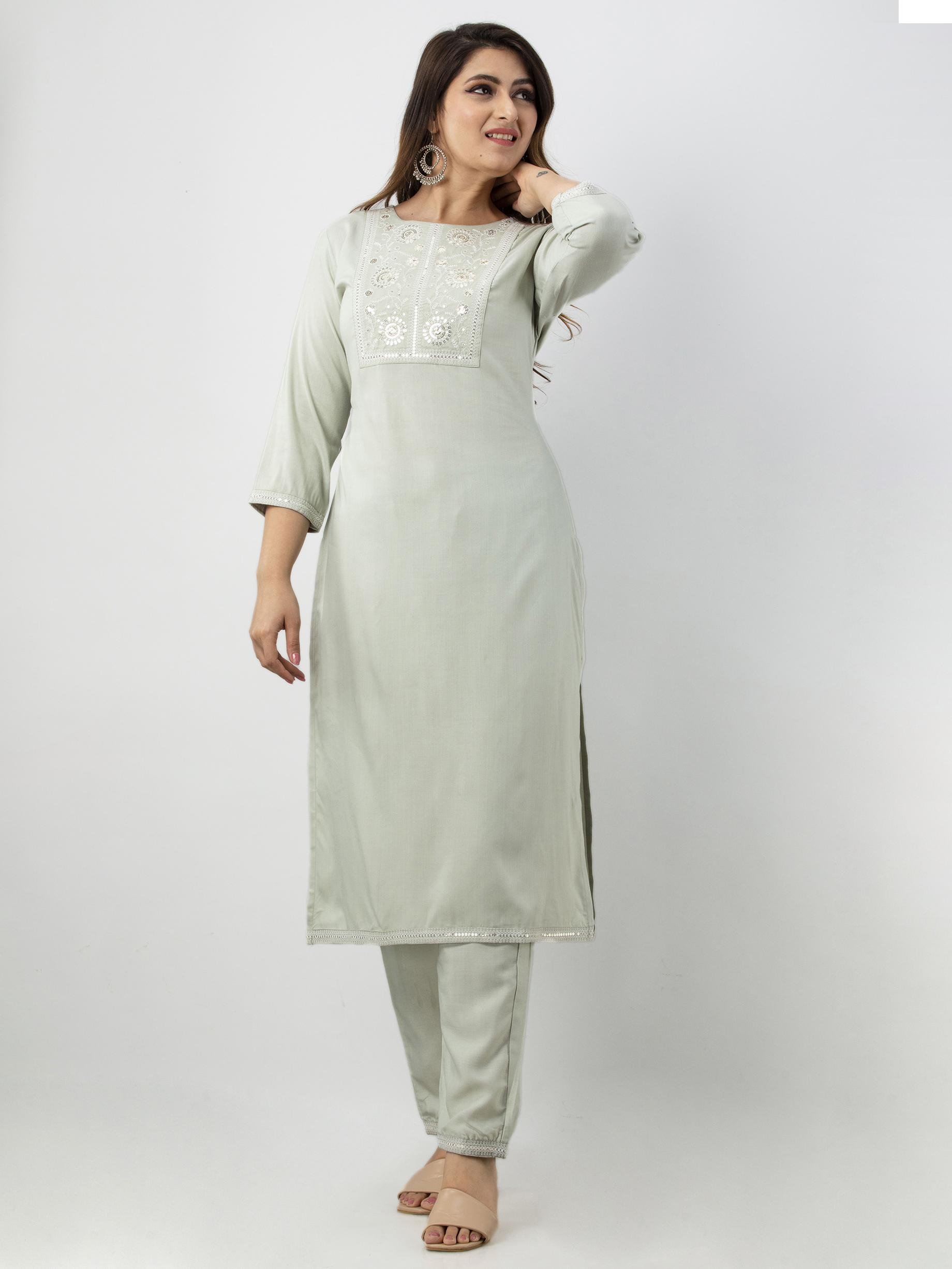 Fabric: Cotton Sleeve Length: Three-Quarter Sleeves Pattern: Dyed/ Washed Combo of: Single Sizes: XL, L, M, XXL "Indulge in the allure of our Sequin Cotton Kurta Set in the enchanting shade of MINT GREEN – a perfect fusion of style and sophistication. This meticulously crafted ensemble is designed to elevate your look with its exquisite sequin work that exudes elegance. Available in a range of sizes, including M (38), L (40), XL (42), and XXL (44), our Sequin Cotton Kurta Set ensures a tailored fit for every body type. We believe in offering fashion that celebrates individuality, and our size range reflects this commitment. The sequin work on this kurta set is nothing short of spectacular, adding a touch of glamour and charm. The intricate detailing enhances the overall elegance, making it a standout choice for various occasions. Whether you're attending a festive celebration or a special event, this ensemble is sure to make you shine. Step into the luxurious embrace of pure cotton, offering not only comfort but also a breathable feel. The Dark Pink hue adds a vibrant touch to your wardrobe, making a bold statement while reflecting your unique style. Make a lasting impression with our Sequin Cotton Kurta Set – where every sequin is a testament to the fine craftsmanship and attention to detail. Elevate your fashion quotient and let the sequin work speak volumes about your refined taste. Choose the Sequin Cotton Kurta Set in Dark Pink for an ensemble that seamlessly combines sophisti Country of Origin: India